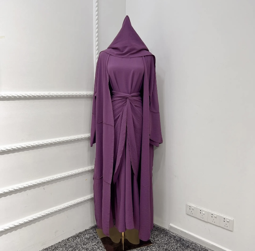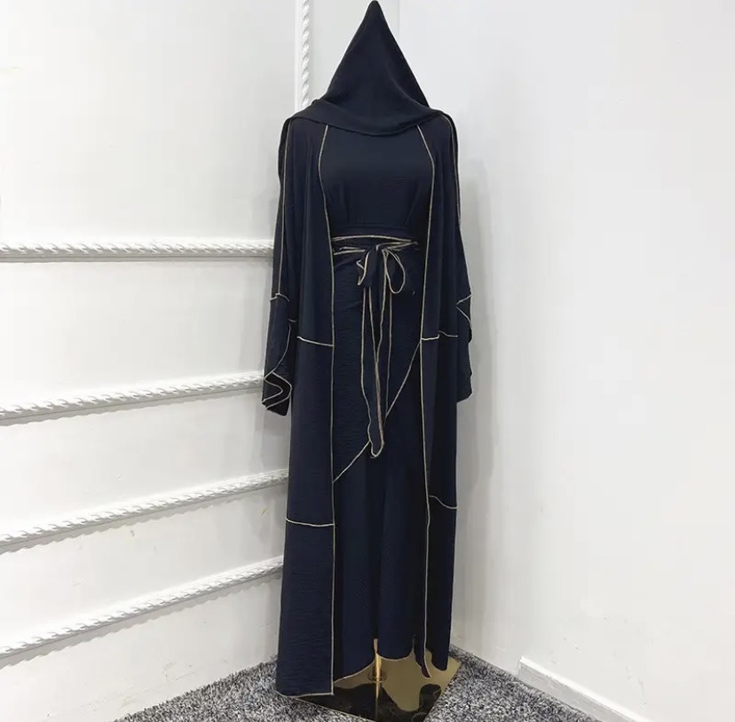 - Abaya 3 pieces composé d’une robe intérieure dun Pagne et d’un manteau