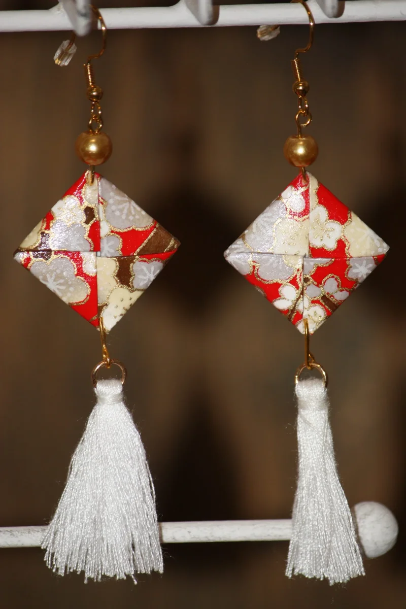 Les boucles d’oreilles Carré en origami sont un bijou qui s’accordera aussi bien avec une robe de soirée qu’avec un style plus décontracté. Elles apporteront une touche japonaise, poétique et originale à vos tenues. Toutes les boucles d’oreilles origami sont fabriquées à la main dans mon atelier Boiseline. Chaque modèle est produit en toute petite quantité.