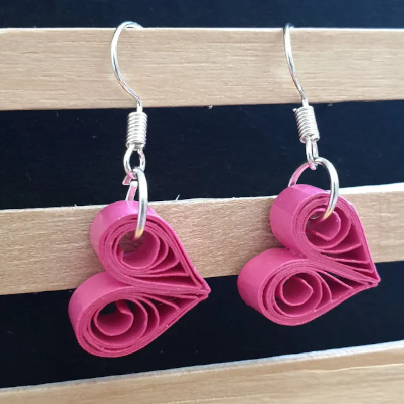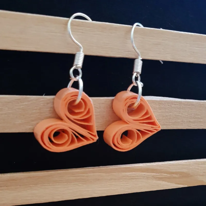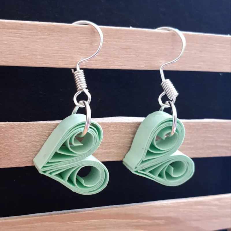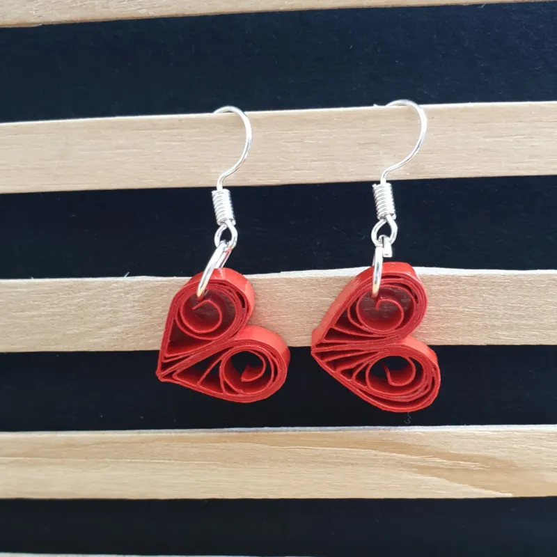Les bijoux sont entièrement faits à la main avec des bandes de papiers de 5mm de largeur roulées ou travaillées selon la technique du quilling.