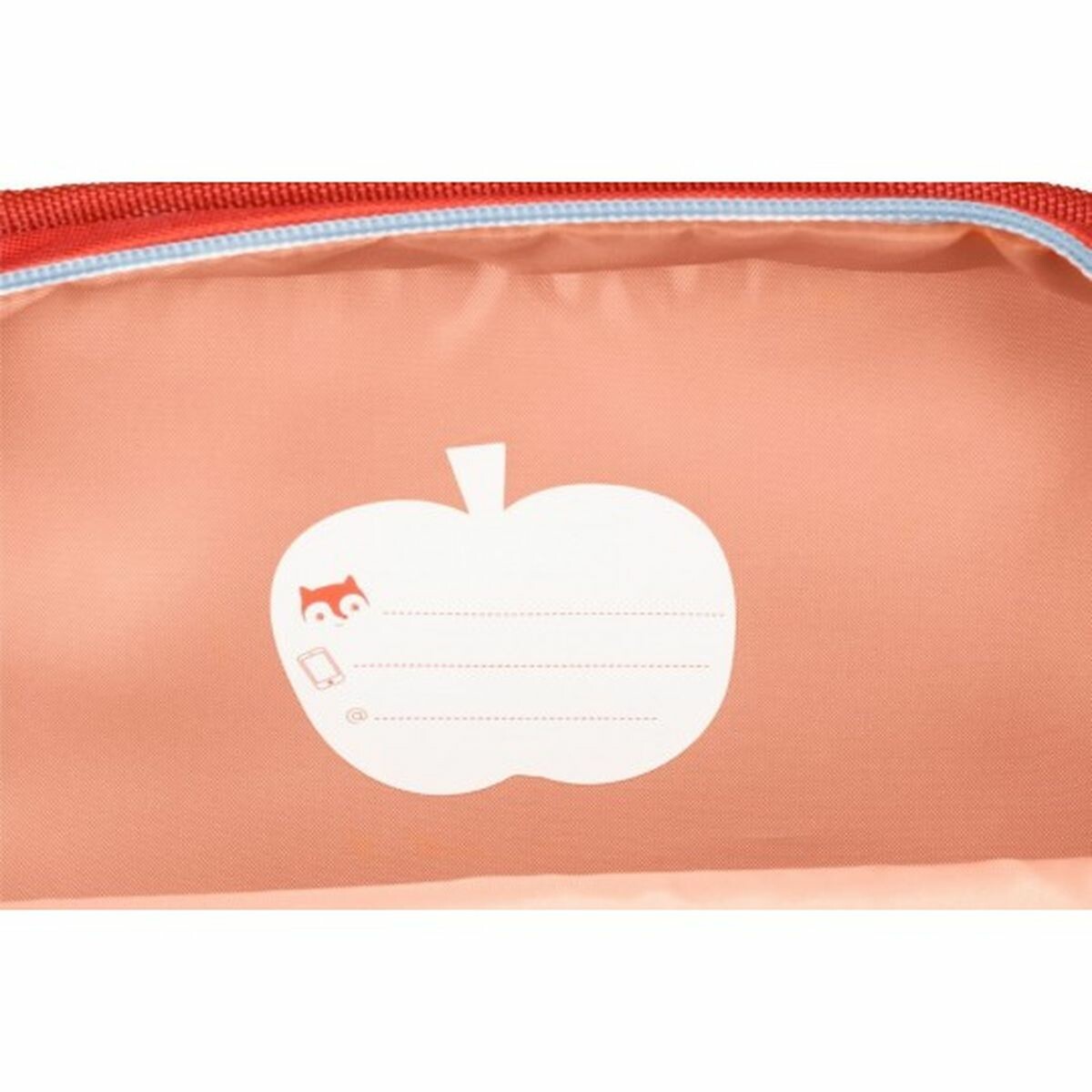 Pratique : une poche pour glisser une bouteille, une pochette à l’avant zippée. Un clip pour fermer le sac. Une étiquette pour écrire ses coordonnées. Une attache si nécessaire pour accrocher le cartable à l’école.
