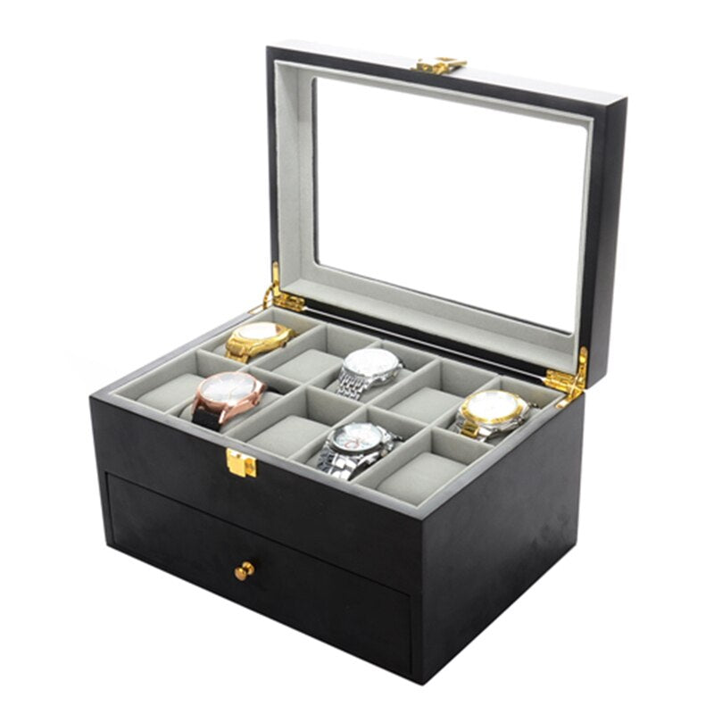 Ce superbe Coffret à Montre en Bois avec un look élégant et un tiroir.