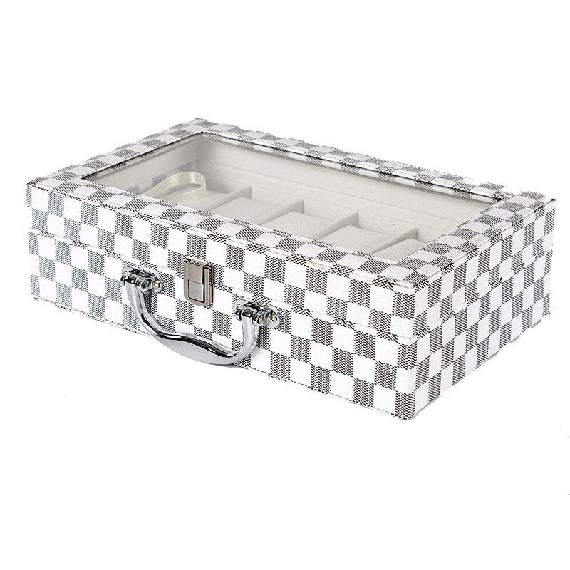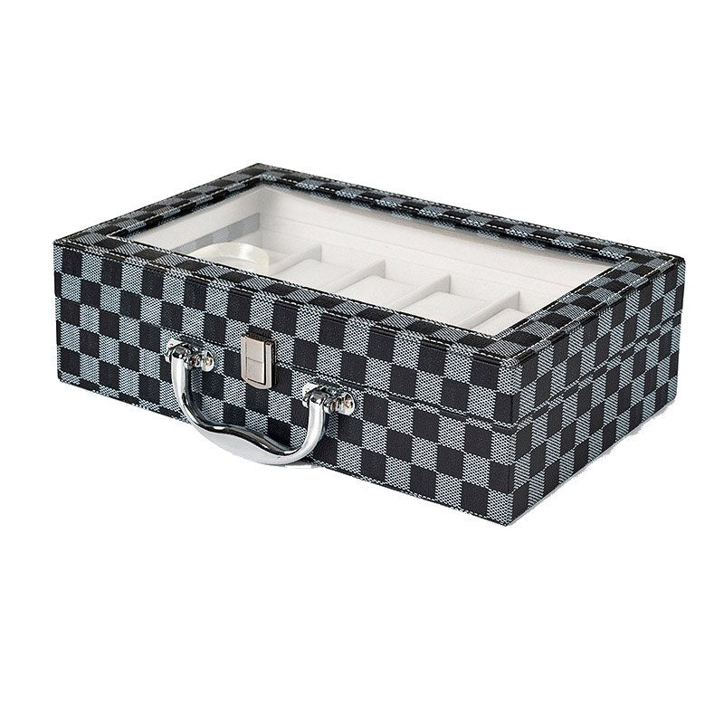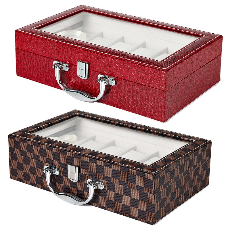Vous cherchez un moyen de vous démarquer des autres ? Voici l’accessoire idéal pour un look unique et particulier. Ce coffret à montre est en cuir de qualité avec un intérieur en velours doux et luxueux blanc. Il est équipé d’un espace pouvant contenir jusqu’à 12 montres et des coussins amovibles pour s’adapter à tous les modèles. De plus, il est doté d’une fermeture à clip et vous pouvez le choisir dans différentes couleurs : rouge, noir ou encore avec des motifs en petits carrés pour un style plus fantaisiste. De plus, le couvercle en verre transparent permet d’admirer les montres qui se trouvent à l’intérieur. Un cadeau parfait !