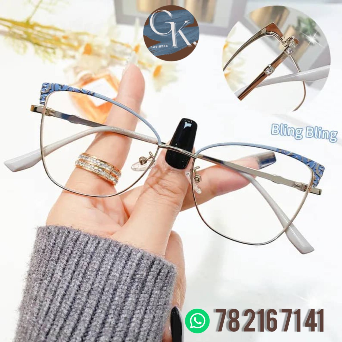 Lunettes optiques diamant motifs floraux sourcil carré oeil de chat métal anti-lumière bleu pour femme.
