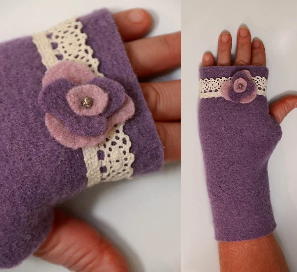 Le froid revient, habillez vos mains. Mitaines en laine bouillie mauve décorées de galons. | Création artisanale et unique, par Boiseline.