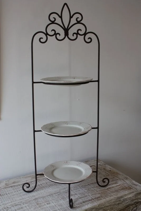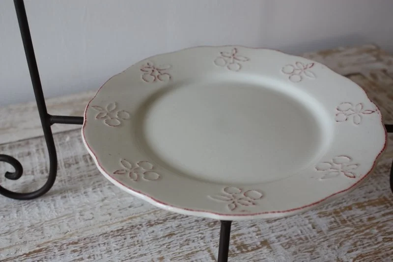 Porte-assiettes avec 3 assiettes décor cerises rouges. Porte-assiettes pour 3 assiettes en métal / 3 assiettes en céramique décor cerises