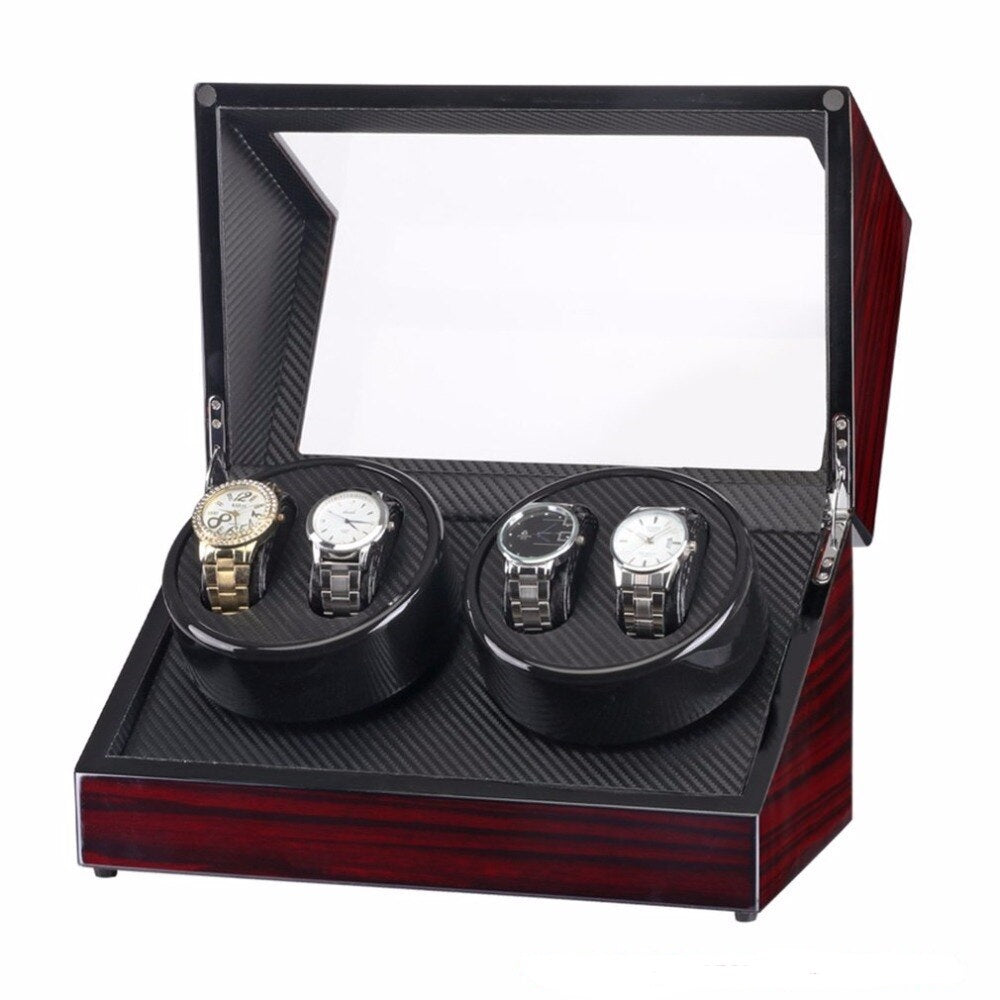 Un remontoir spécialement conçu pour plusieurs montres, l’intérieur est fait de fibre de carbone avec une capacité de remonter jusqu’à 4 montres en même temps! L’extérieur est un bois piano bordeaux avec un verre sur l’angle qui permet d’admirer les montres lorsque le coffret est fermé.
