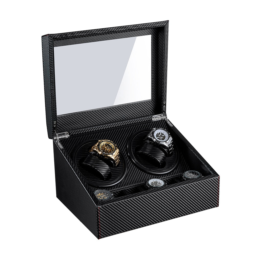 Le remontoir gardera vos montres synchronisées chaque fois que vous en aurez besoin! Peut remonter jusqu’à 4 montres en même temps! De plus, vous pouvez stocker 6 montres supplémentaires! Une vitre transparente permet de voir les montres automatiques même lorsque le coffre est fermé!