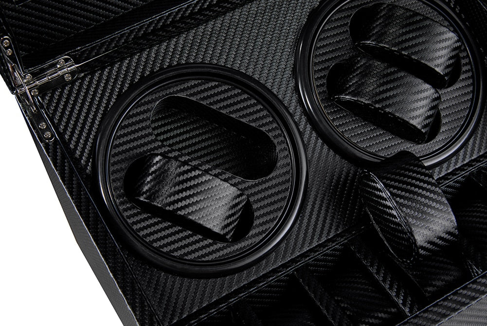 Magnifique Remontoir de Montres, orné d’une surpiqûre rouge et de fibre de carbone à la fois à l’intérieur et à l’extérieur.