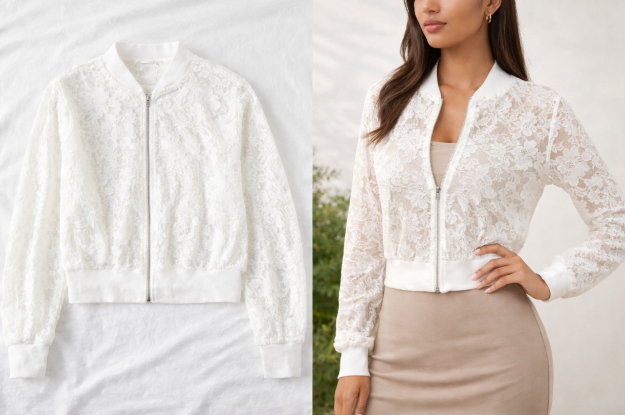Jolie veste courte en dentelle blanche avec fermeture éclair.